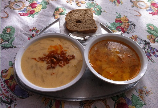 A lé viszonylag híg. A burgonya eltérő állagú, egy része kemény, de vannak szétfőtt darabok is. A tészta kellően rugalmas, puha. |