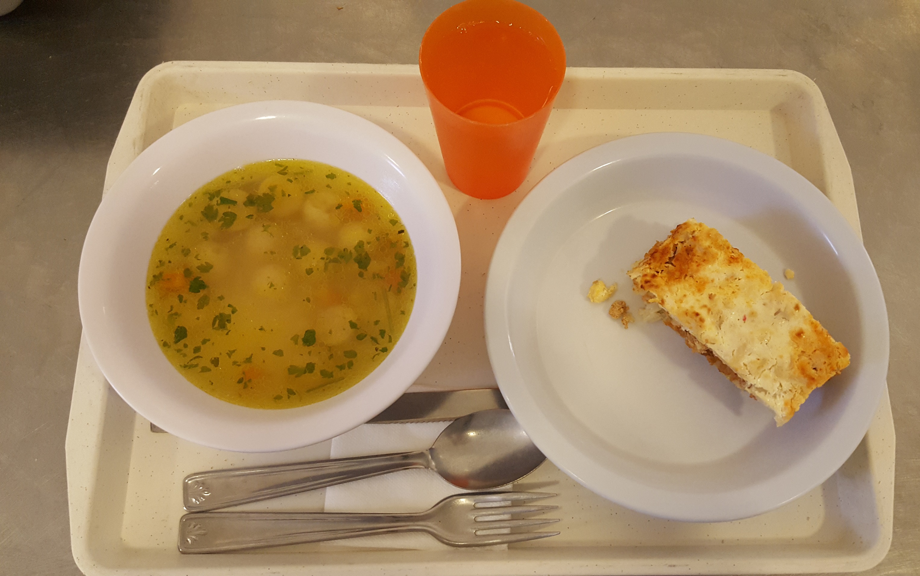 Grízgombóc leves Sárgarépa (mirelit) Petrezselyemgyökér (mirelit) Vöröshagyma Petrezselyemzöld Étolaj Só Ételízesítő (só mentes) Grízgaluska Zeller Fűszerpaprika Rakott karfiol Karfiol Pulyka apróhús Rizs Lecsó Étolaj Őrölt kömény Tejföl 12% Piros arany Fűszerpaprika Só Bors Bazsalikom