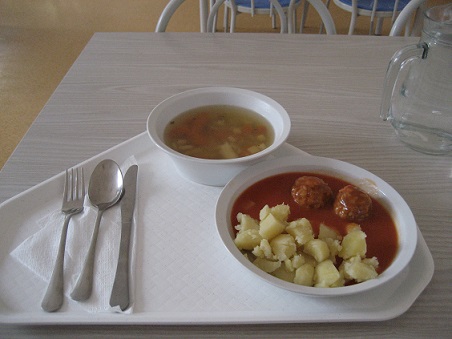 Kertész leves Olaj Liszt Száraztészta Fekete őrölt bors Só Ételízesítő Gyökér Karalábé Sárgarépa Vöröshagyma Zeller Karfiol (mirelit) Petrezselyemzöld (mirelit) Zöldbab, sárgahüvelyes (mirelit) Zöldborsó (mirelit) Húsgombóc Sertés színhús Tojás Rizs Őrölt fekete bors Vöröshagyma Paradicsomos mártás Olaj Liszt Kristálycukor Só Vöröshagyma Sűrített paradicsom konzerv Főtt burgonya