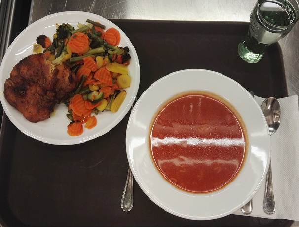 Menü: Paradicsomleves, Sült csirkecomb sült zöldség körettel