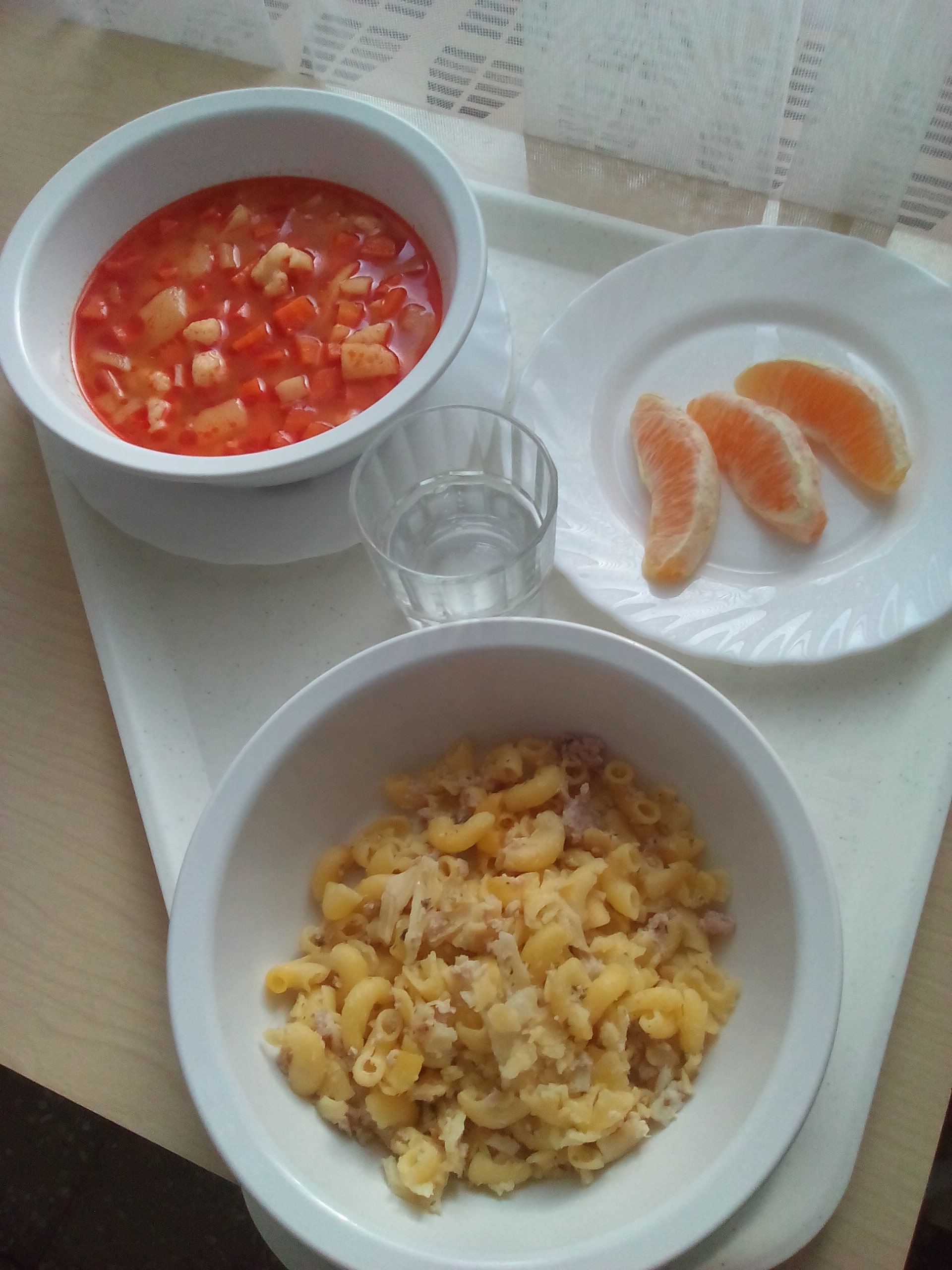 A tészta egy része szétfőtt, morzsalékos, a szarvacska tészta alaktartó, néhány darab sült, felülete zsiradéktól enyhén fénylő. A sonka morzsalékos, kissé száraz. |