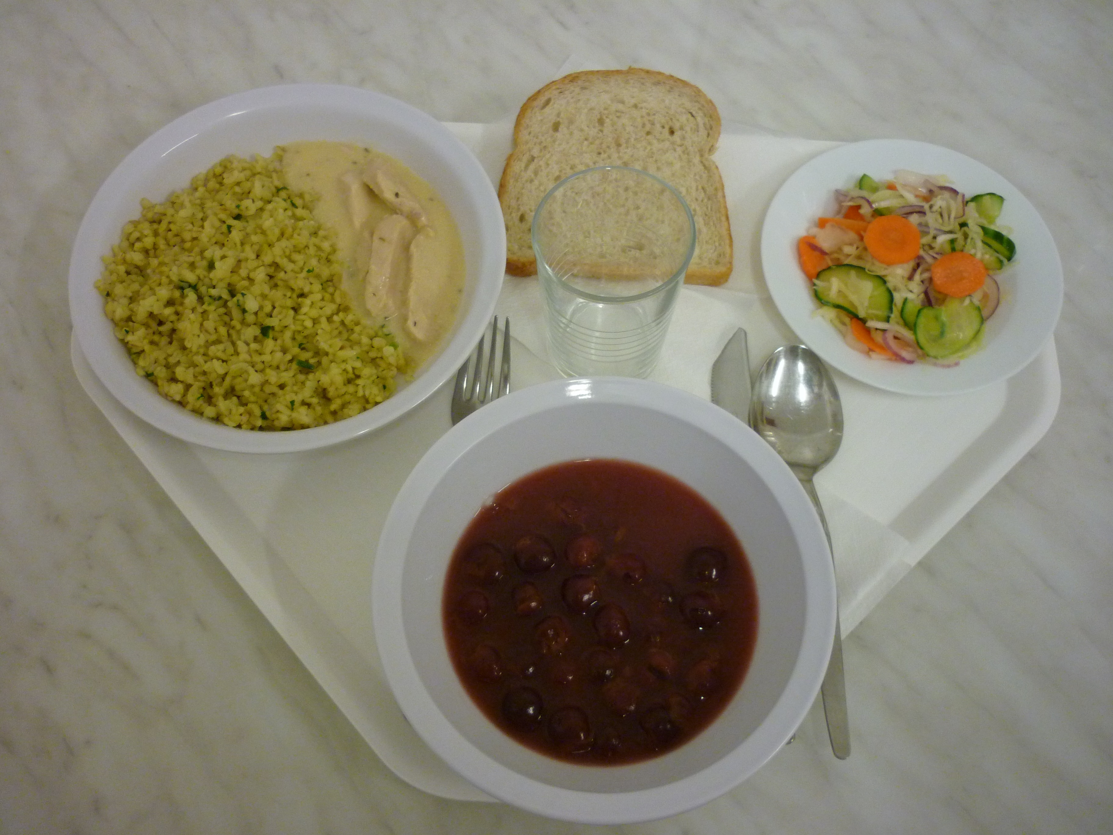 Vaníliás meggyleves Citrom Fahéj Kristálycukor Meggy (mirelit) Vaníliás pudingpor Tej Mustáros csirkemell Csirkemell Fokhagyma Só Lecsó (konzerv) Majoranna Mustár Olaj Petrezselyemzöld Rozmaring Tejföl Vörös/ Lilahagyma Bulgur Petrezselyemzöld Vitamin saláta Ecet 10% Fejeskáposzta Só Köménymag Kristálycukor Olaj Sárgarépa Uborka Vörös/Lilahagyma |