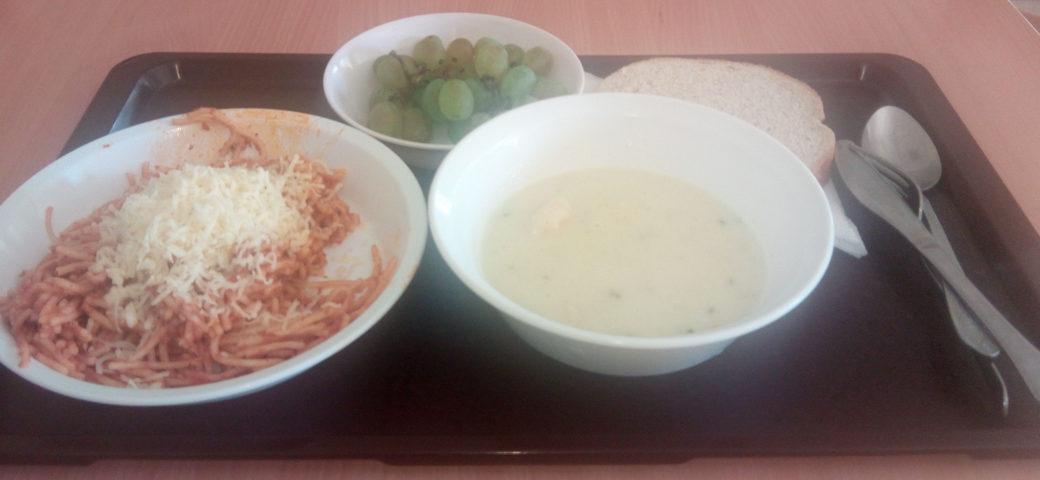 Menü: Karfiolleves, Bolognai spagetti, Szőlő, Tönköly kenyér