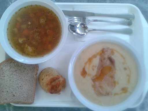 Kertészleves Sárgarépa Gyökér Sertés csont Zellergumó Karalábé Petrezselyemzöld Bors Vöröshagyma Só jódozott Kelbimbó Karfiol Delikát só mentes Tészta Zöldbabfőzelék Fűszerpaprika olaj Só jódozott Bors Vöröshagyma Liszt tejföl 20% Fokhagyma (mirelit) Zöldbab (mirelit) Ecet Kristálycukor Babérlevél Fokhagymás sertésült Fokhagymakrém Köménymag Olaj Paradicsompüré Sertés comb Só Jódozott Vöröshagyma PÁC fűszerkeverék Liszt Teljeskiőrlésű magvas pogácsa Liszt Élesztő Tojás Só jódozott Tökmag Tejföl 20% Rama margarin Liszt (teljeskiőrlésű)