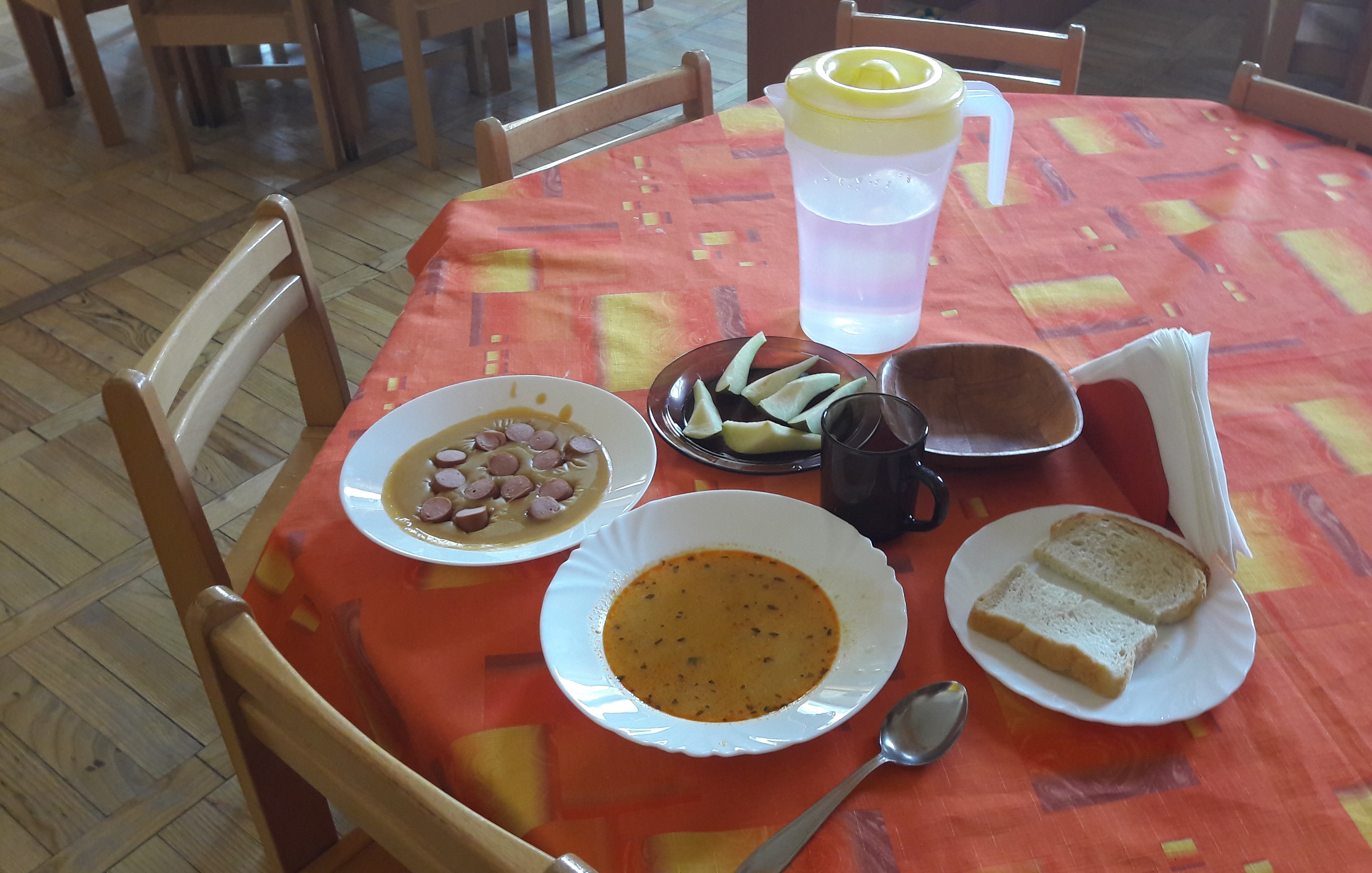 Zsúrmóka leves Füstölt kenyérszalonna 0,25 kg Liszt 0,4 kg Fekete Őrölt bors 0,01 kg Delikát 0,05 kg Fűszerpaprika 0,05 kg Natúr lecsó (konzerv) 0,5 kg Étolaj 0,3 l Só 0,05 kg Dörzstarhonya 1 kg Petrezselyemzöld (mirelit) 0,03 kg Vöröshagyma (mirelit) 0,3 kg Tejföl 12% 1,5 l Sárgaborsó főzelék Füstölt kenyérszalonna 0,2 kg Babérlevél 0,005 kg Liszt 1 kg Fekete Őrölt bors 0,005 kg Delikát 0,05 kg Fűszerpaprika 0,05 kg Étolaj 0,8 kg Sárgaborsó 4 kg Só 0,05 kg Vöröshagyma (mirelit) 0,8 kg Fokhagyma (mirelit) 0,15 kg Frankfurti virsli 6 kg