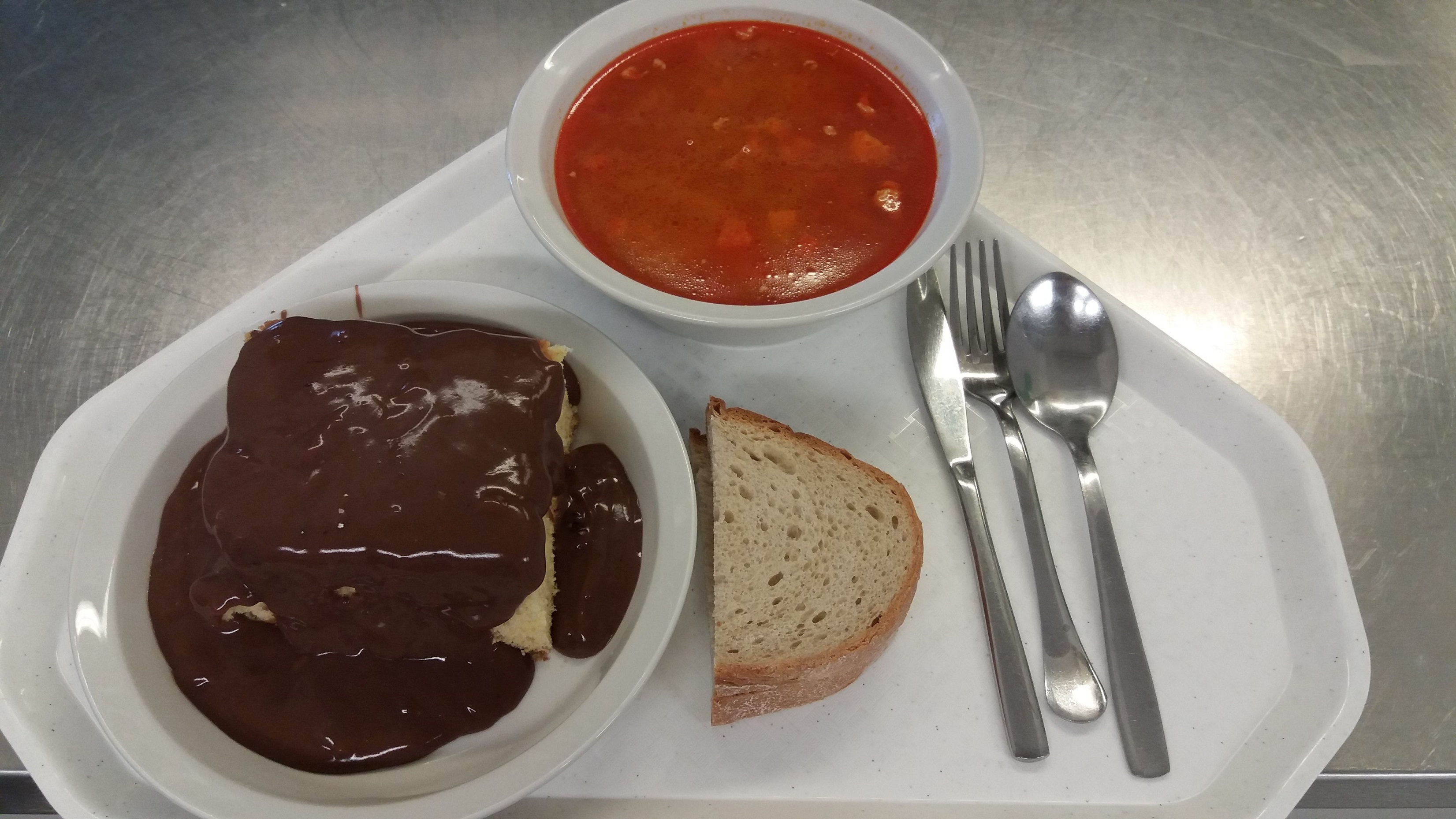 Menü: Gulyásleves, Piskótakocka csokoládé sodóval