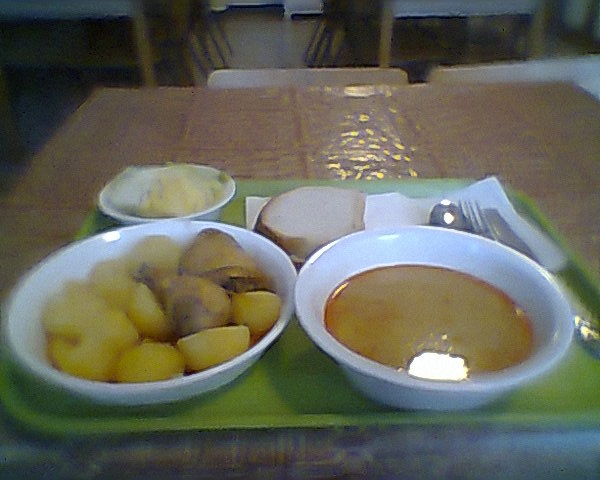 A burgonya jól átfőtt, puha, nem szétmálló, a hús kellően puha, alakját megtartja. |