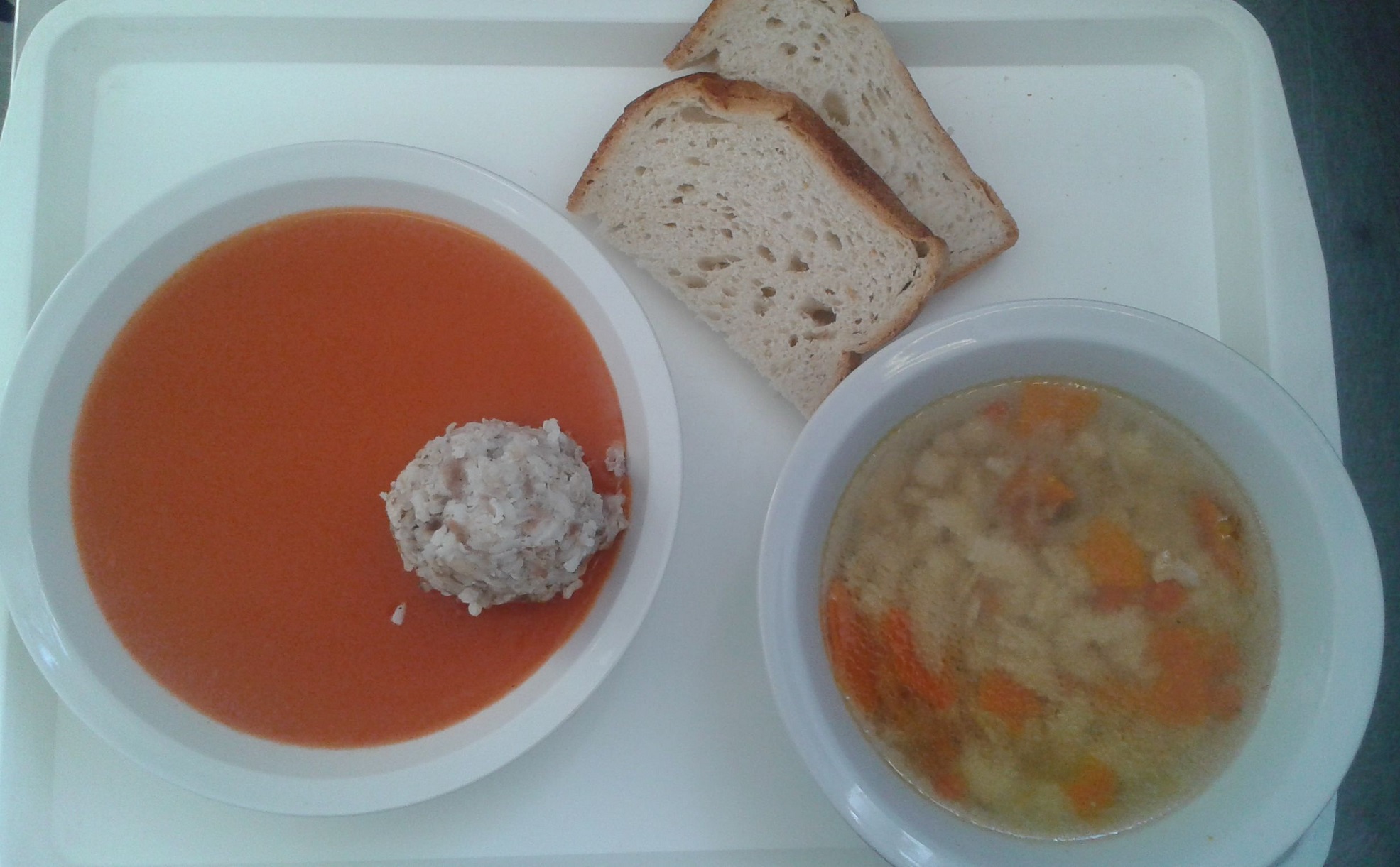 Menü: Marhacsontleves, Húsgombóc paradicsommártással, Kenyér