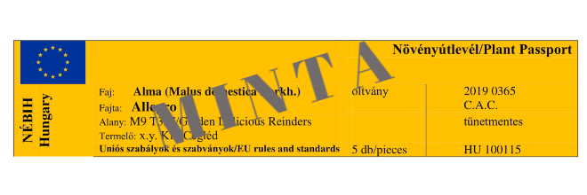 Az alábbiakban, példaként, szemléltetjük több típusú gyümölcs és szőlő szaporítóanyag címke kötelező tartalmát és új formátumát. A példák csak tájékoztató jellegűek és nem tükrözik a címkék pontos méretét.