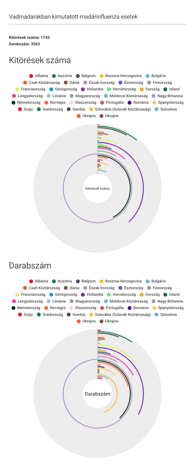 2024. szeptember 1. – 2025. augusztus 31-ig Európában összesen 630 baromfitartó gazdaságban, 173 fogságban tartott madarakat tartó létesítményben és 3.563 db vadmadárból mutatták ki a szakemberek a magas patogenitású madárinfluenza vírusát.