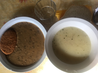Menü: Francia hagymakérmleves, lencsefőzelék panírozott pulykakorong fasírttal