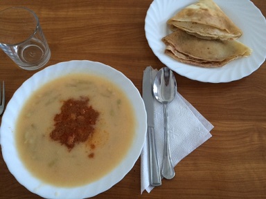 A lé híg, nem kellően sűrű. Homogén, csomómentes. A zöldbab megfelelően megfőtt, egy-két fás darabot tartalmaz. |