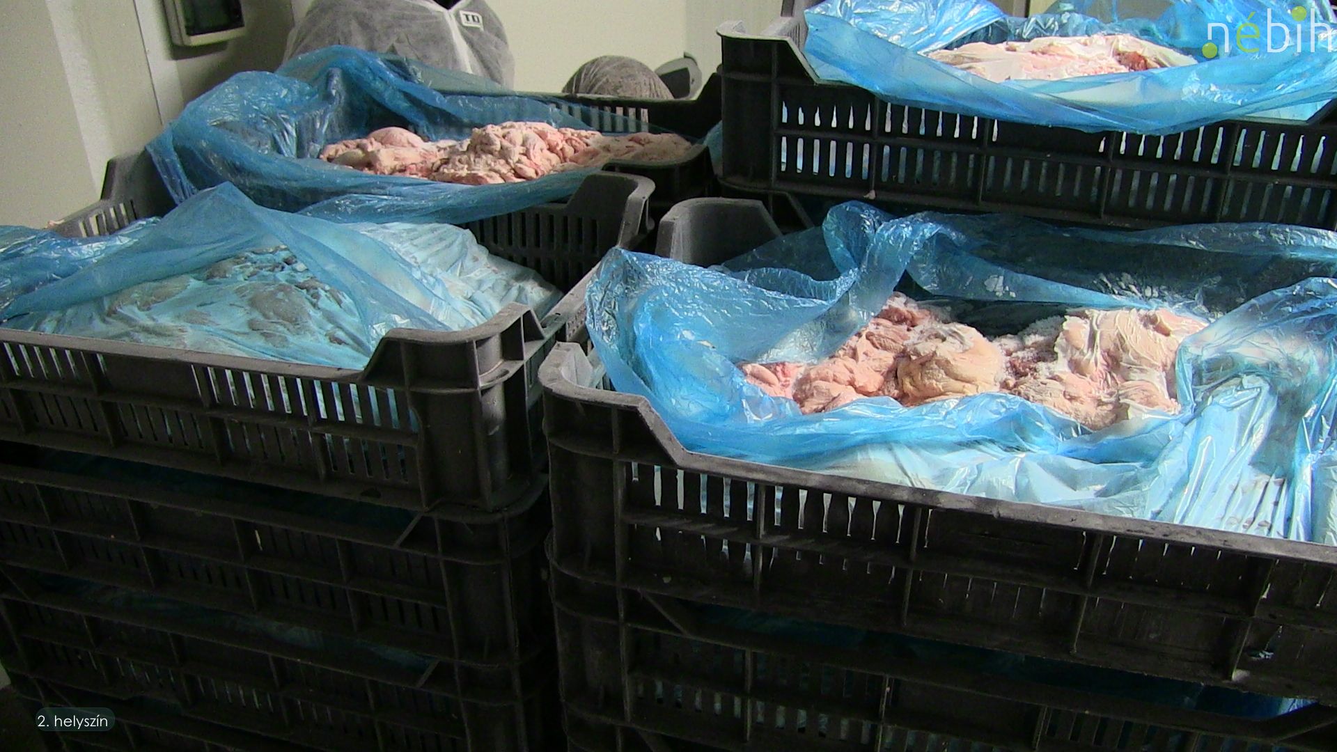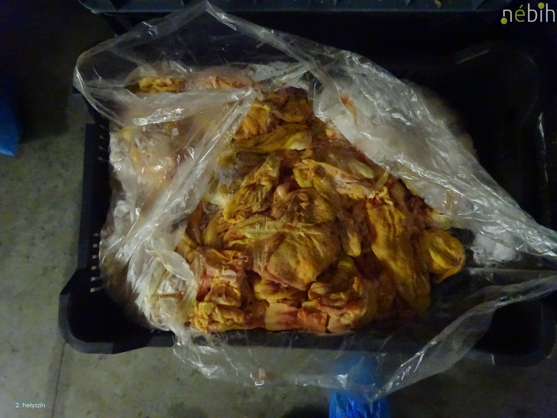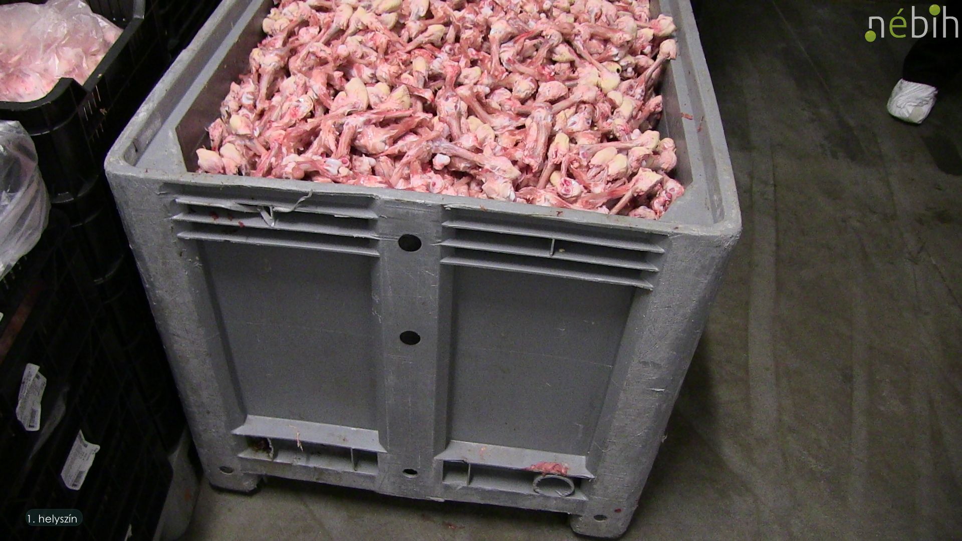 A higiénikus kézmosás feltételei az üzemben egyetlen helyen sem voltak biztosítottak. A falra szerelt mágneses eszköztartók fém részei korrodáltak voltak. Az alapanyagokat, valamint a késztermékeket több esetben alátétláda használata nélkül tárolták a padozaton. Az egység nem rendelkezett az állati eredetű melléktermékek elhelyezésére szolgáló helyiséggel sem. A fagyasztási tevékenységet az üzemben nem dokumentálták. A feldolgozó helyiség előterében a padozaton alátét nélkül elhelyezett ládákban, jelölés szerint előhűtött, ténylegesen azonban fagyott állapotú csirkecombfilé felolvasztását végezték az ellenőrök érkezésekor.