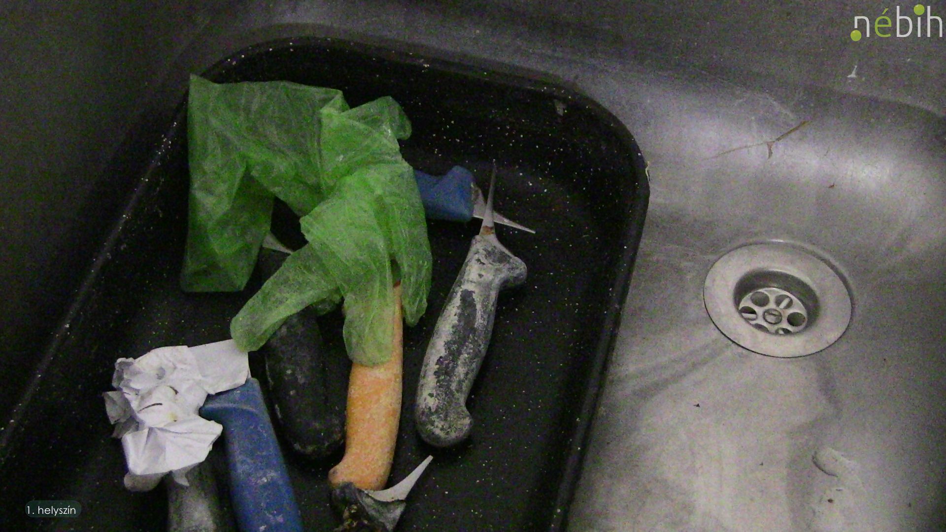 A bemutatott dokumentumok alapján a legutóbbi kártevőirtást csaknem egy éve végezték. Az egyik munkaasztal átlyukadt műanyag lapja alatt szennyeződés halmozódott fel. A mosogatómedence szintén szennyezett volt, mosó-, tisztítószer nem volt kihelyezve. Az egységben egyetlen helyen volt forróvizes eszközfertőtlenítő felszerelve, azonban azt sem használták. A berendezés nem volt vízzel feltöltve, a késtartó rostélya hiányzott, víztere szennyezett volt. Így a létesítmény nem rendelkezett üzemképes eszközfertőtlenítővel.