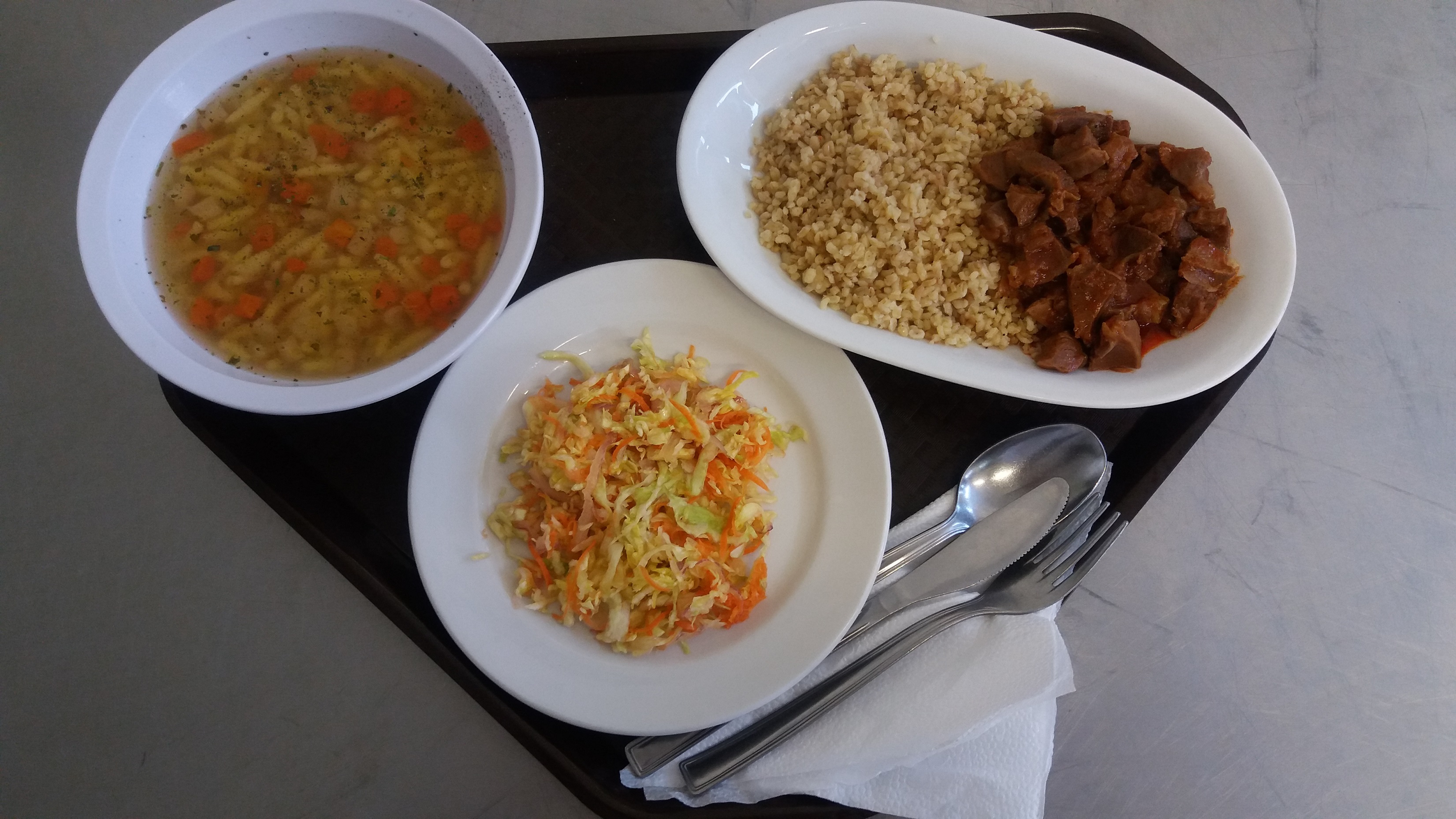 Menü: Zöldségleves csigatésztával, Zúzapörkölt csigatésztával,