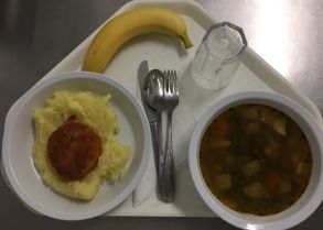 Menü: Tavaszi zöldségleves, Hal paprikáslisztben burgonyapürével, banán
