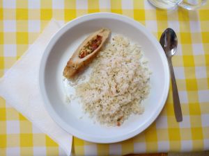 Menü: Mediterrán pulykarolád párolt rizzsel