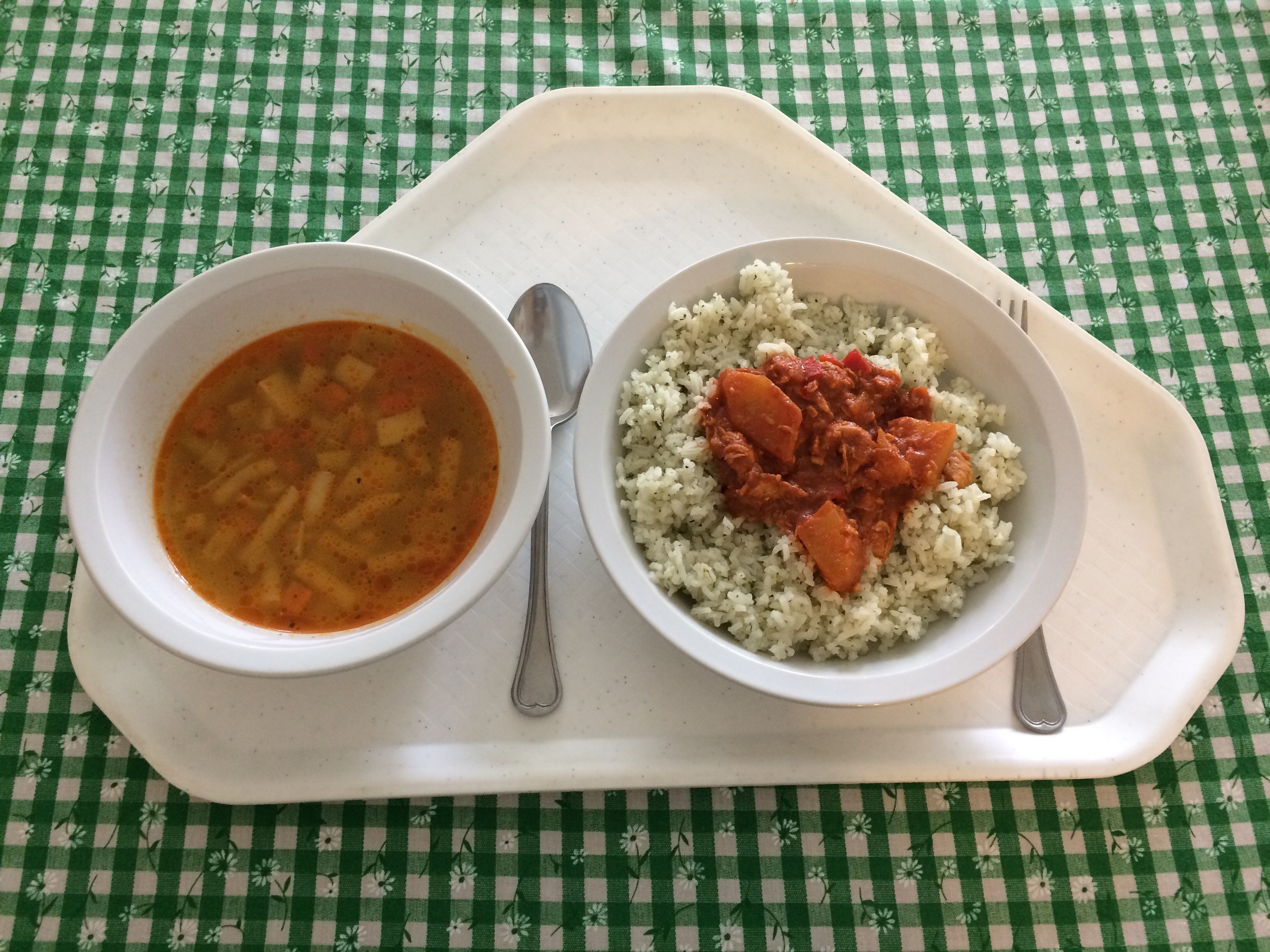 Menü: Zöldbableves, Édes-savanyú csirkemell, Jázmin rizs