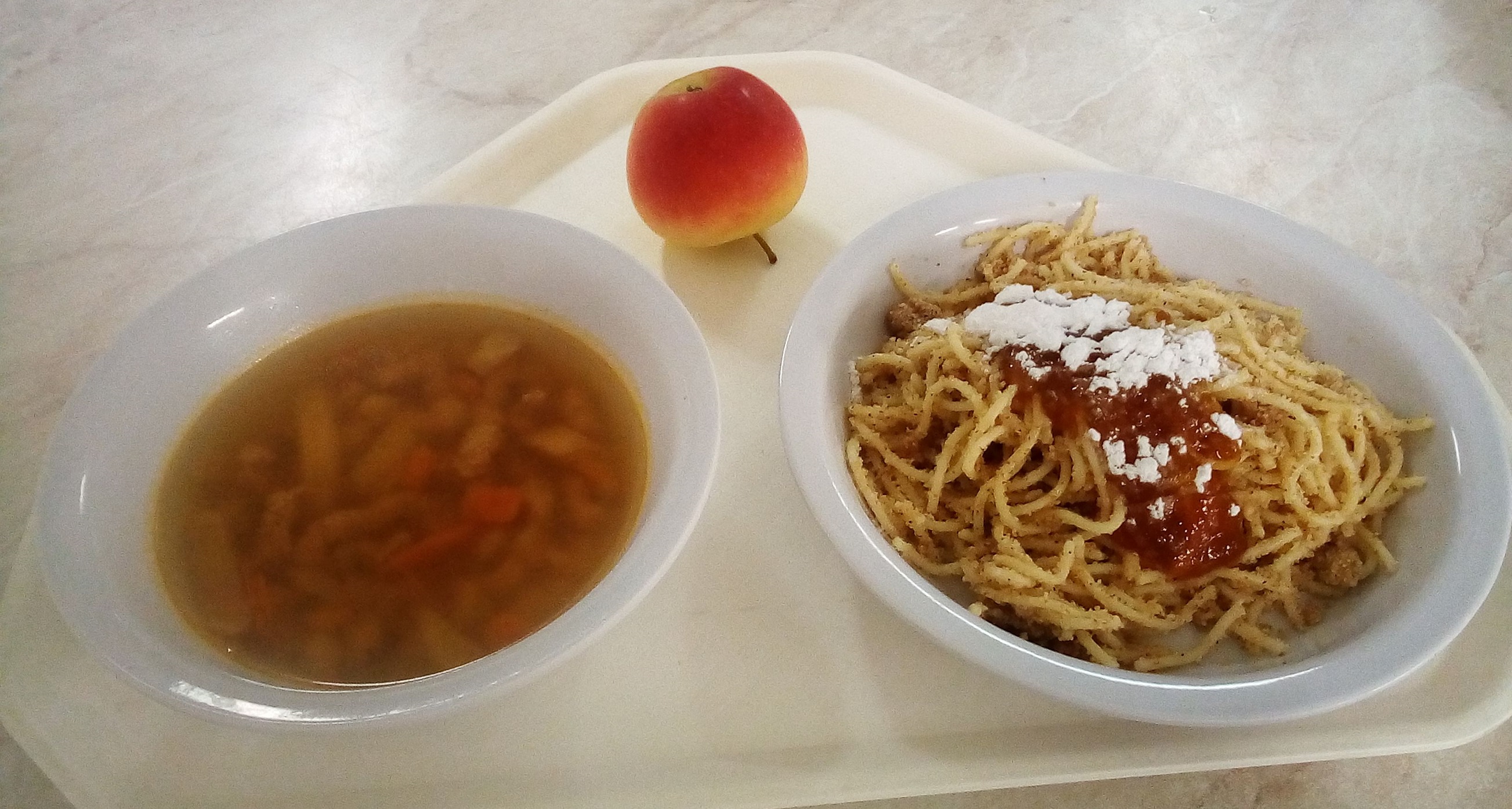 Menü: Húsgaluska leves, Grízes tészta, Alma