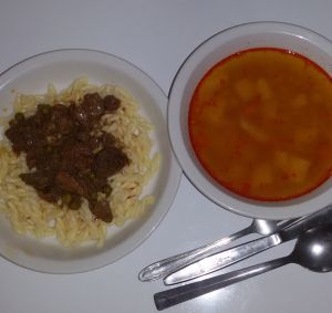 Menü: Tarhonyaleves, Zöldborsós csirkemell tésztakörettel
