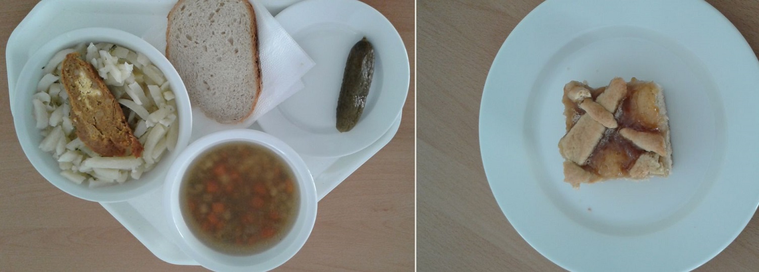 Menü: Csurgatott leves, Stefánia vagdalt, Petrezselymes burgonya, Ecetes uborka, Rácsos linzer, Kenyér