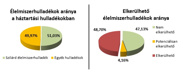 A tényleges hulladékmérésen alapuló felmérés aggasztó eredményeket hozott. A teljes élelmiszerhulladék mennyiségét vizsgálva megállapítható, hogy a felmért 100 háztartás 1 hetes élelmiszerhulladék termelése megközelítőleg 386 kg volt, amely – az adatok 1 évre történő extrapolációja alapján létrejött számítás szerint – éves szinten 68,04 kg élelmiszerhulladékot jelent fejenként. Ez az összes élelmiszervásárlásunk kb. 10-11%-át teszi ki (bázisadat: KSH, 2015). A legfrissebb becslés szerint élelmiszerhulladék tekintetében az EU-s átlag egyébként 92 kg/fő, amelyet elsősorban a régebbi, magasabb vásárlóerővel rendelkező tagállamok adatai húznak felfelé. A részletes adatfelvétel lehetőséget biztosított arra, hogy külön is számszerűsíthessük a nem elkerülhető élelmiszerhulladékokat (például tojáshéj, csontok), a potenciálisan elkerülhető élelmiszerhulladékokat (alapvetően fogyasztásra alkalmas anyagok, amelyek az egyéni fogyasztói preferencia vagy egészségi állapot (jellemzően rágási, emésztési problémák) miatt kerülnek szemétbe, pl. csirkebőr, kenyérhéj, almahéj), illetve a tényleges pazarlás eredményeképpen keletkező, elkerülhető élelmiszerhulladékokat (feleslegesen megvásárolt vagy tárolási problémák miatt megromlott termékek).