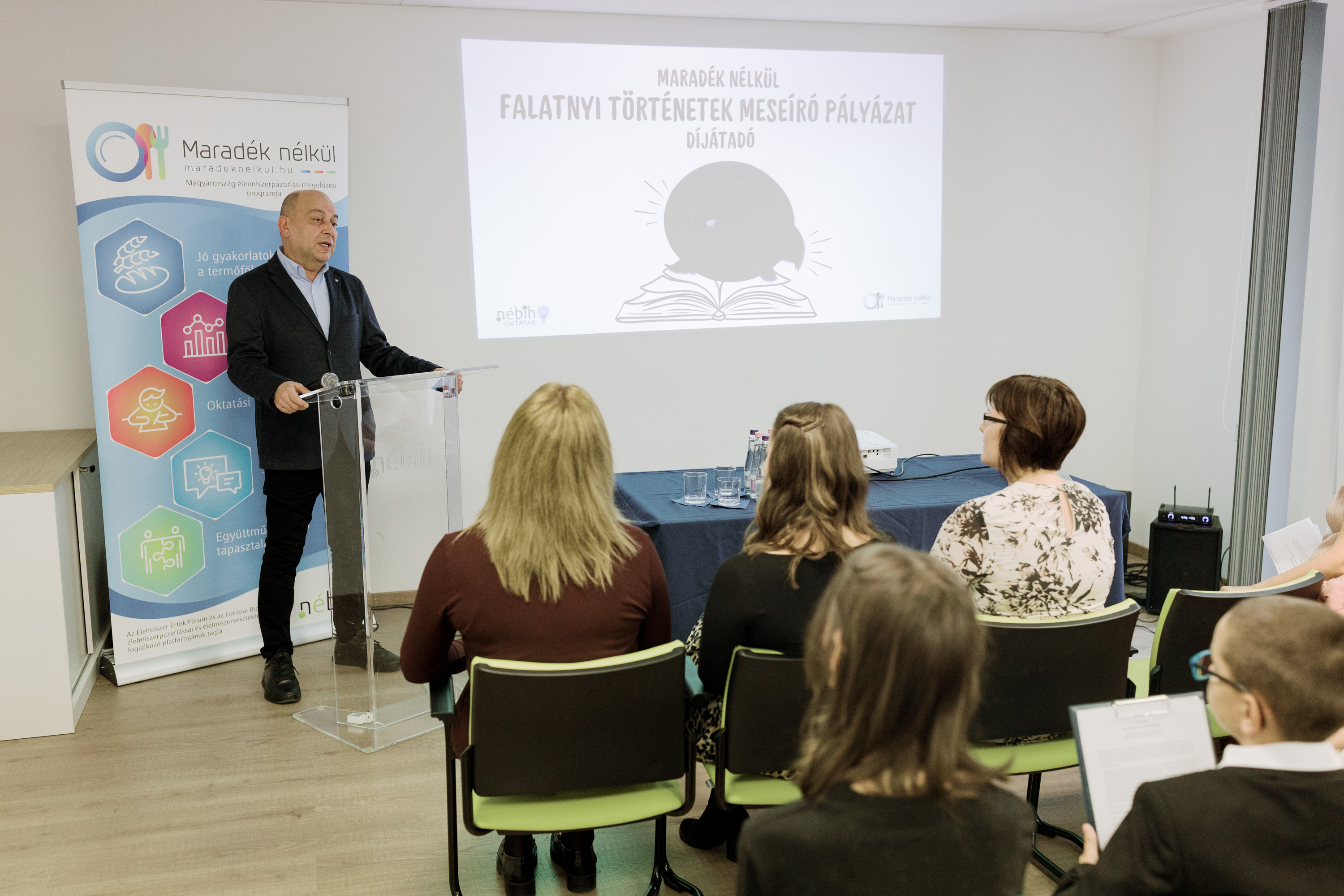 A díjátadó rendezvényt dr. Helik Ferenc, a Nébih elnökhelyettese nyitotta meg, aki hangsúlyozta: „A gyerekek történetei azt bizonyítják, hogy a legfiatalabb generáció is képes felismerni: az élelmiszer érték, amellyel felelősen kell bánnunk. Ha már gyerekkorban megtanuljuk megbecsülni az ételt, az egész életre szóló szemléletet adhat.”