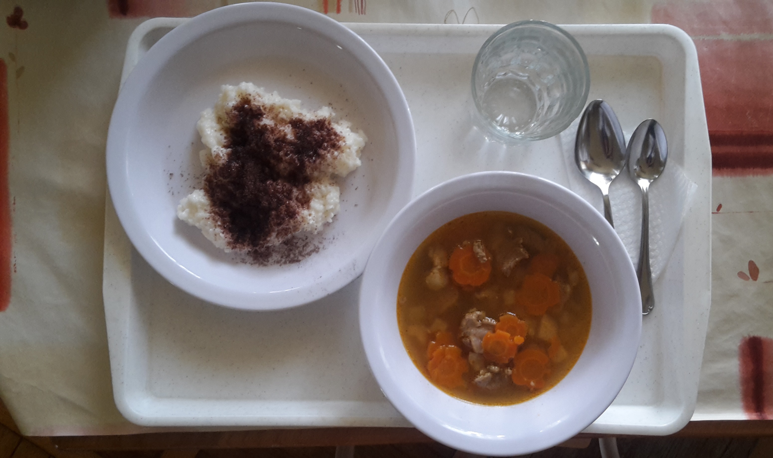 Gulyásleves Burgonya Étolaj Fokhagyma Petrezselyemgyökér (mirelit) Karalábé (mirelit) Kömény Paprikapor Sertés comb Sárgarépa Vöröshagyma (mirelit) Zeller (mirelit) Ételízesítő Só mentes Tejberizs Rizs „A” Vaníliás cukor Kristálycukor Margarin Kakaópor |