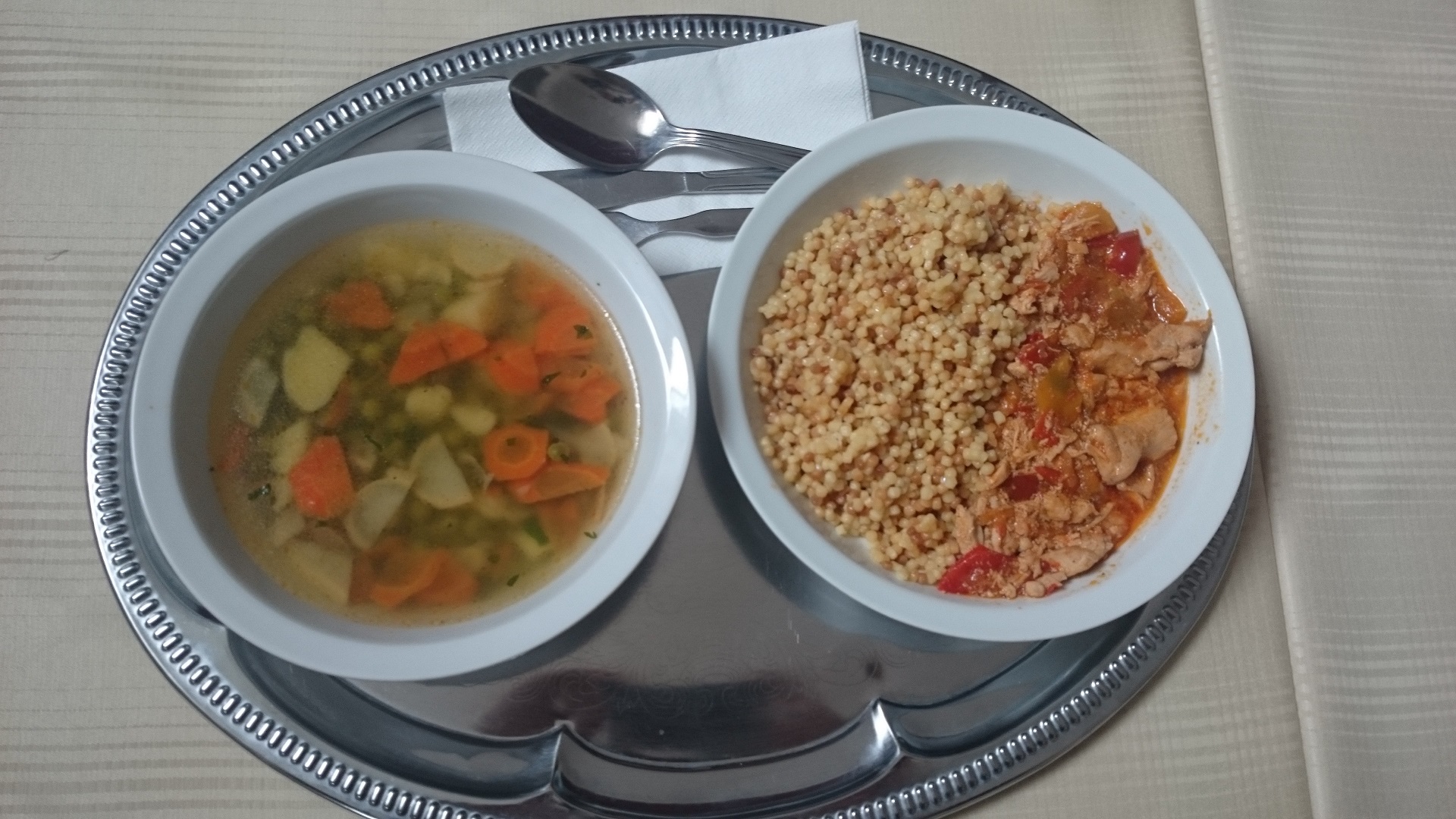 | Állomány: | A lé hígan folyó, a zöldségek és a galuska elpuhultak, a borsó kemény héjú. |