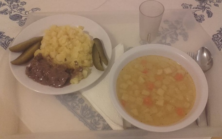 Menü: Magyaros karalábéleves, Mustáros csirkemáj, főtt burgonya, Csemege uborka