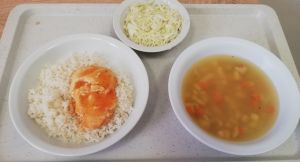 Menü: Daragaluskaleves, Natúr csirkemellfilé párolt rizzsel és káposztasalátával