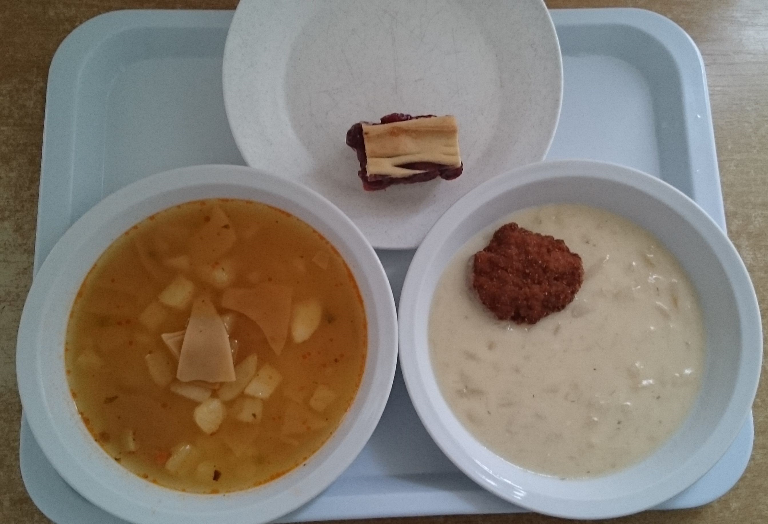 Menü:Lebbencsleves, Tökfőzelék párolt vagdalttal, Cukrászsütemény