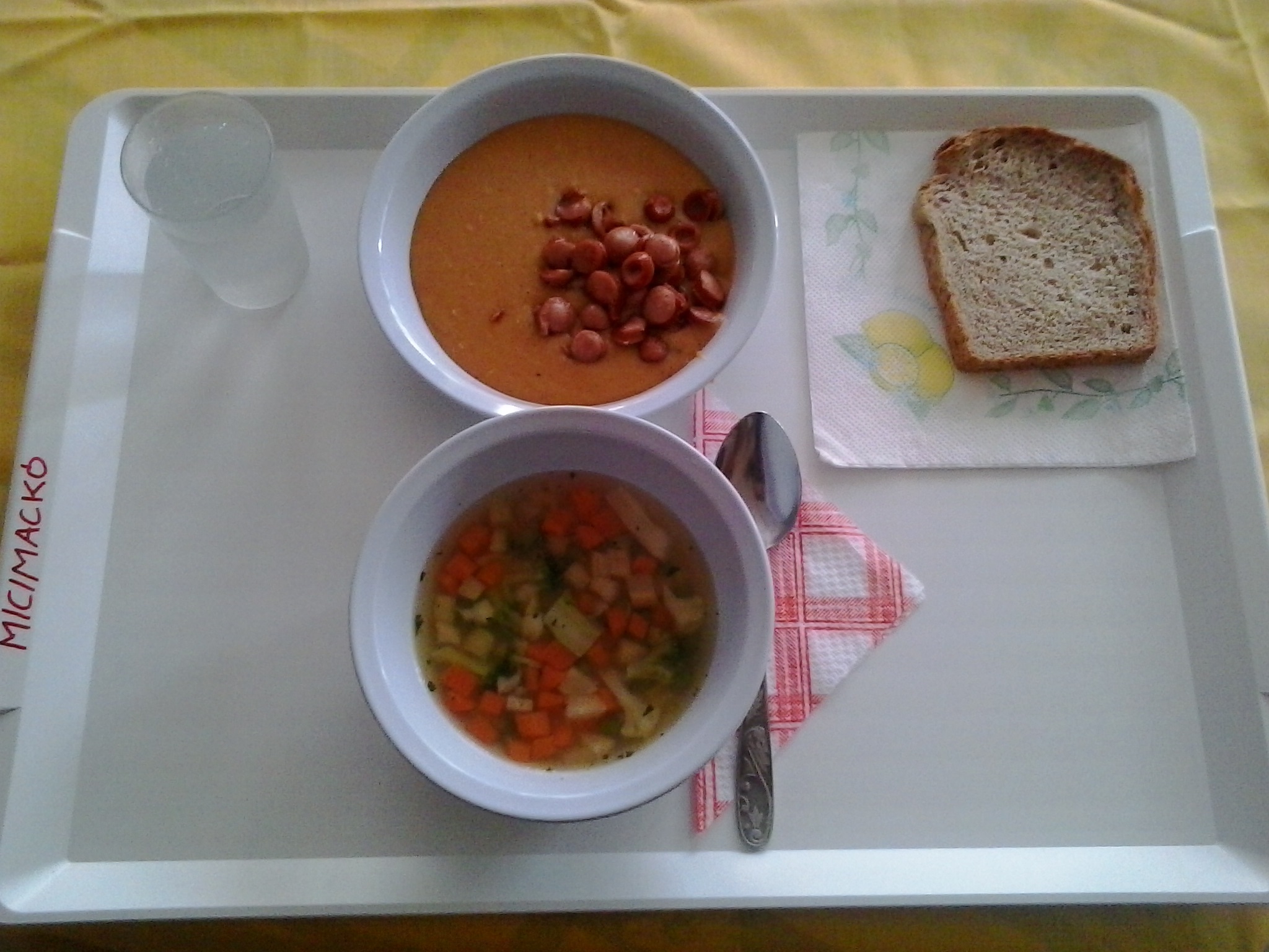 A zöldségek és a tészta is jól átfőtt, de nem túlfőtt. A lé híg. |