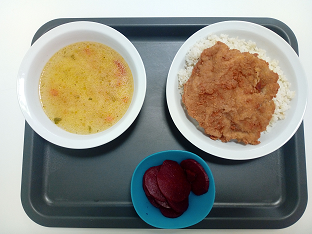 Menü: Zöldségleves, Rántott karaj párolt rizzsel és céklasalátával