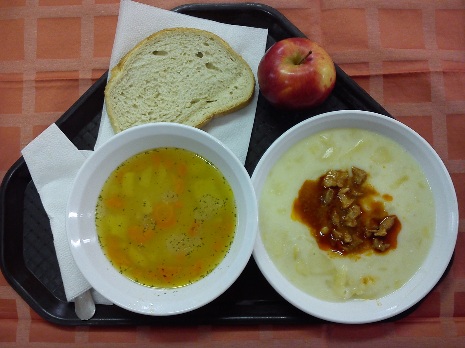 A lé sűrűbb, zsírosabb a jellegzetesnél, a zöldségek kellően átfőttek, némelyik szétfőtt, de a fehérrépa fás részeket is tartalmaz. A rizs szétfőtt, szétázott. |