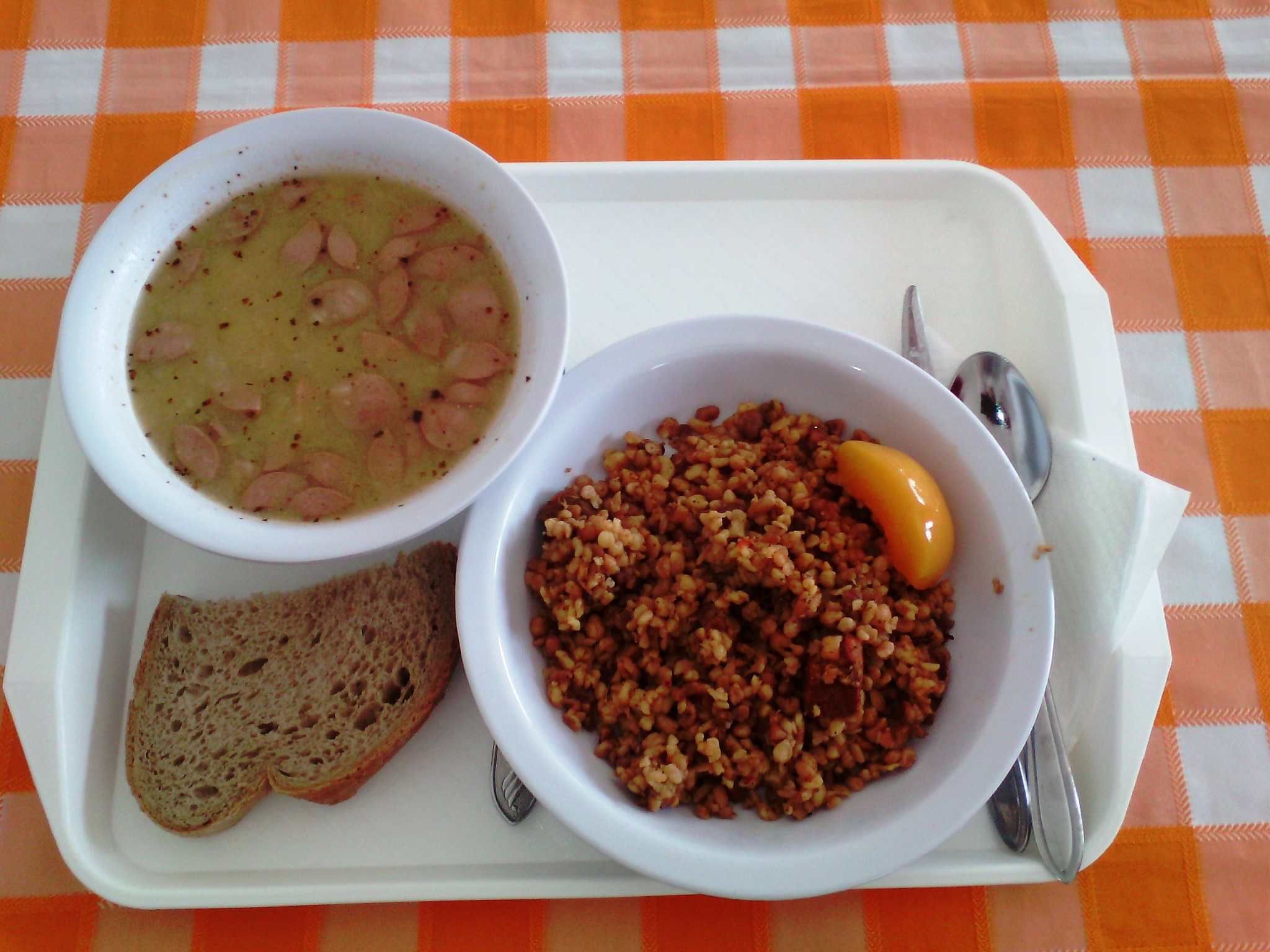A hús kissé rágós, száraz, rágási maradékot ad, a tarhonya csomókba összeállt, nehezen rágható-nyelhető. Az étel nem egyenletesen főtt meg, az inas húsrészek nehéz rághatósága miatt undort keltő. |