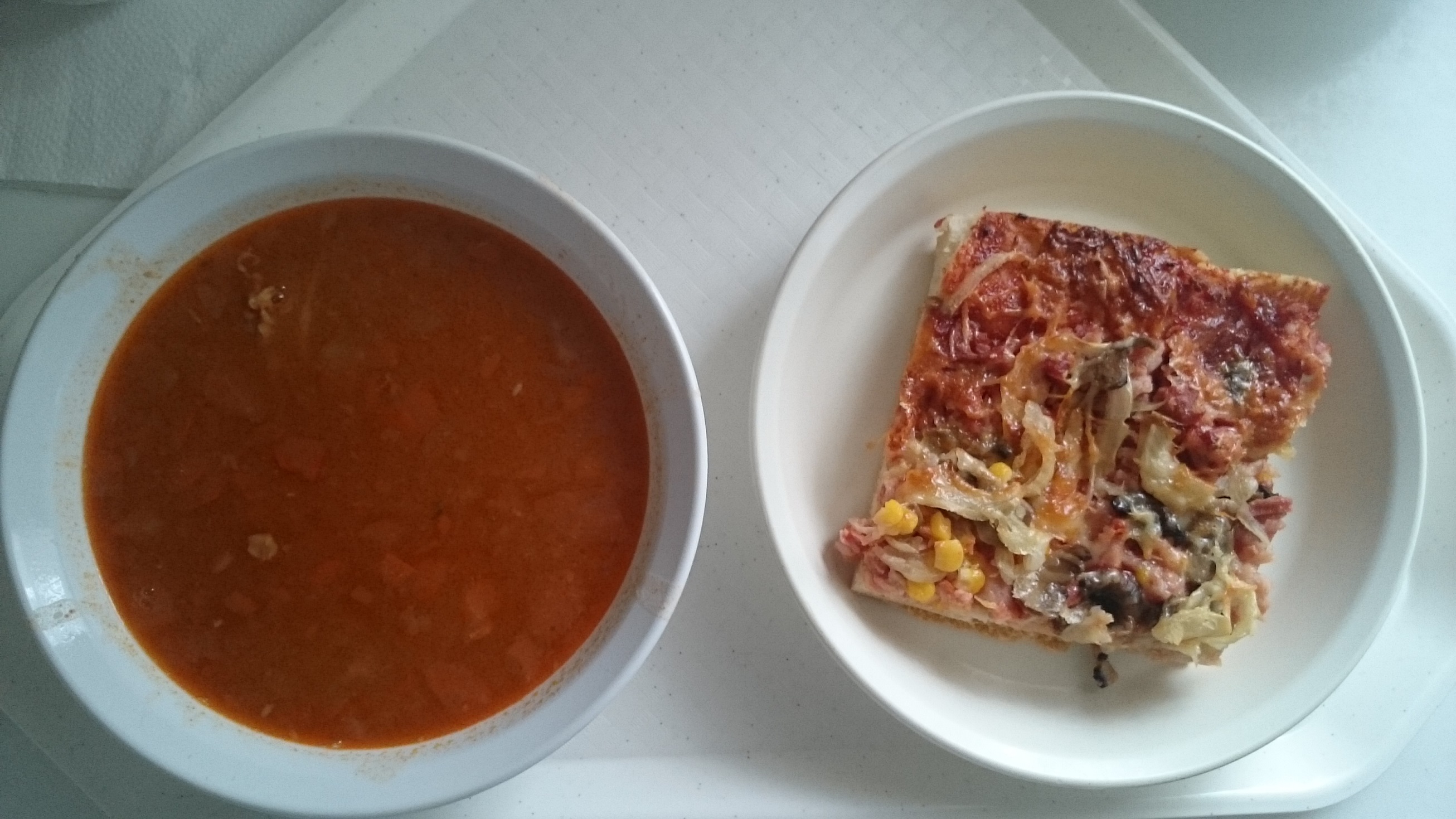 | Állomány: | Az alaplé sűrűn folyó, csomómentes. A zöldségek többnyire egyenletesen főttek át, némelyik azonban túlfőtt, a hús megfőtt, néhol nehezebben rágható. |
