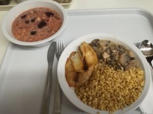 | Külső megjelenés: | A halfilé világosbarnára sült, belseje drappos fehér színű. Felülete zsiradéktól fénylő, fűszerszemcsékkel szórt. A mártás: barnás-szürkés opálos lében különböző méretű gombaszeletek, zöldpetrezselyem darabkák vannak. A mártásban fehér sűrítőanyag szemcsék, felületén arányos mennyiségű zsiradék cseppek láthatók. Bulgur: pergős, főtt szemek, kissé eltérő színárnyalatban, aranybarnától a sötétbarnáig pirítva. |