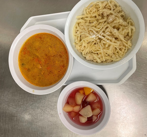 | Állomány: | Az alaplé homogén, csomómentes, tetején sok a zsiradék. A hús és a zöldségek is jól rághatók, jól átfőttek. A betét nem ragacsos. |
