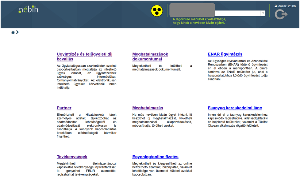 1. Az új felület, a Nébih Ügyfélprofil Rendszerébe (ÜPR) történő belépés után megjelenő kezdőképernyőn, a „Faanyag kereskedelmi lánc” menüpont kiválasztásával érhető el. Az ÜPR-be ügyfélkapus azonosítással lehet belépni.