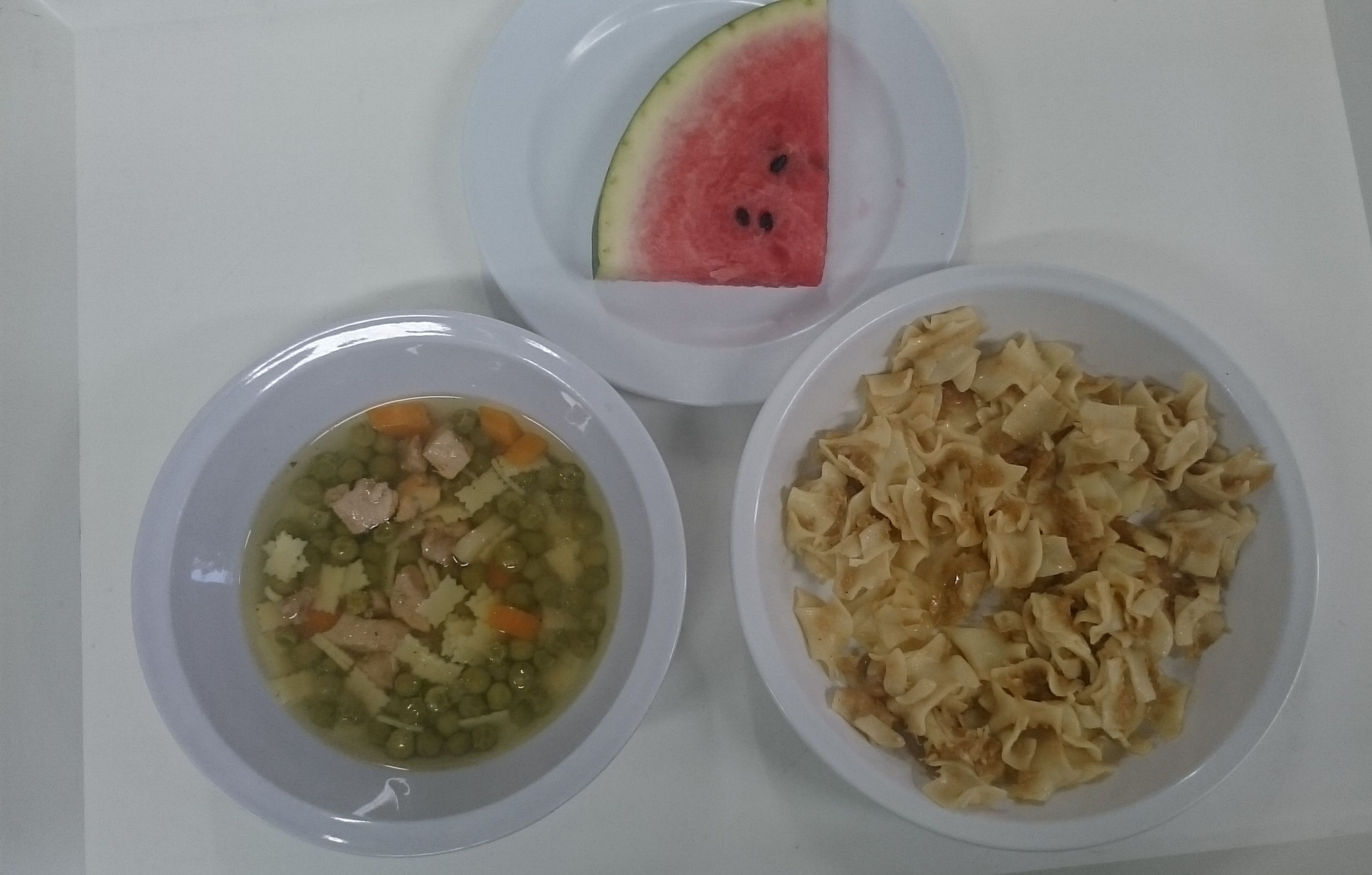 Menü: Sertésragu leves, Káposztás kocka, Görögdinnye