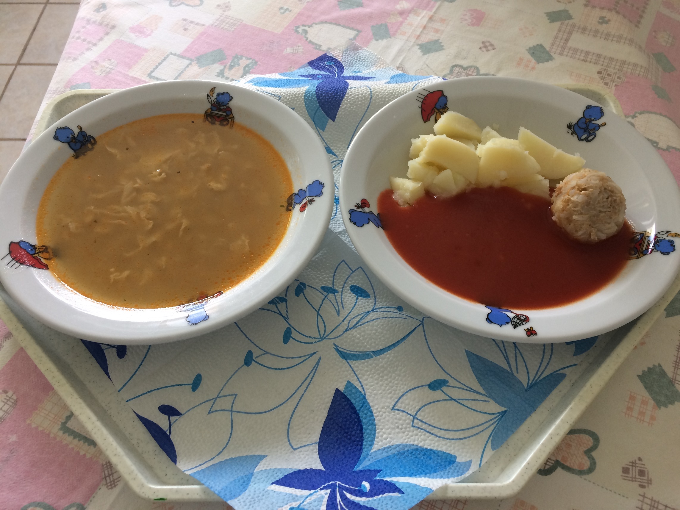 Menü: Tojásleves, Paradicsommártás, húsgombóc,