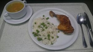 Menü: Zöldségleves, sült csirkecomb rizibizivel
