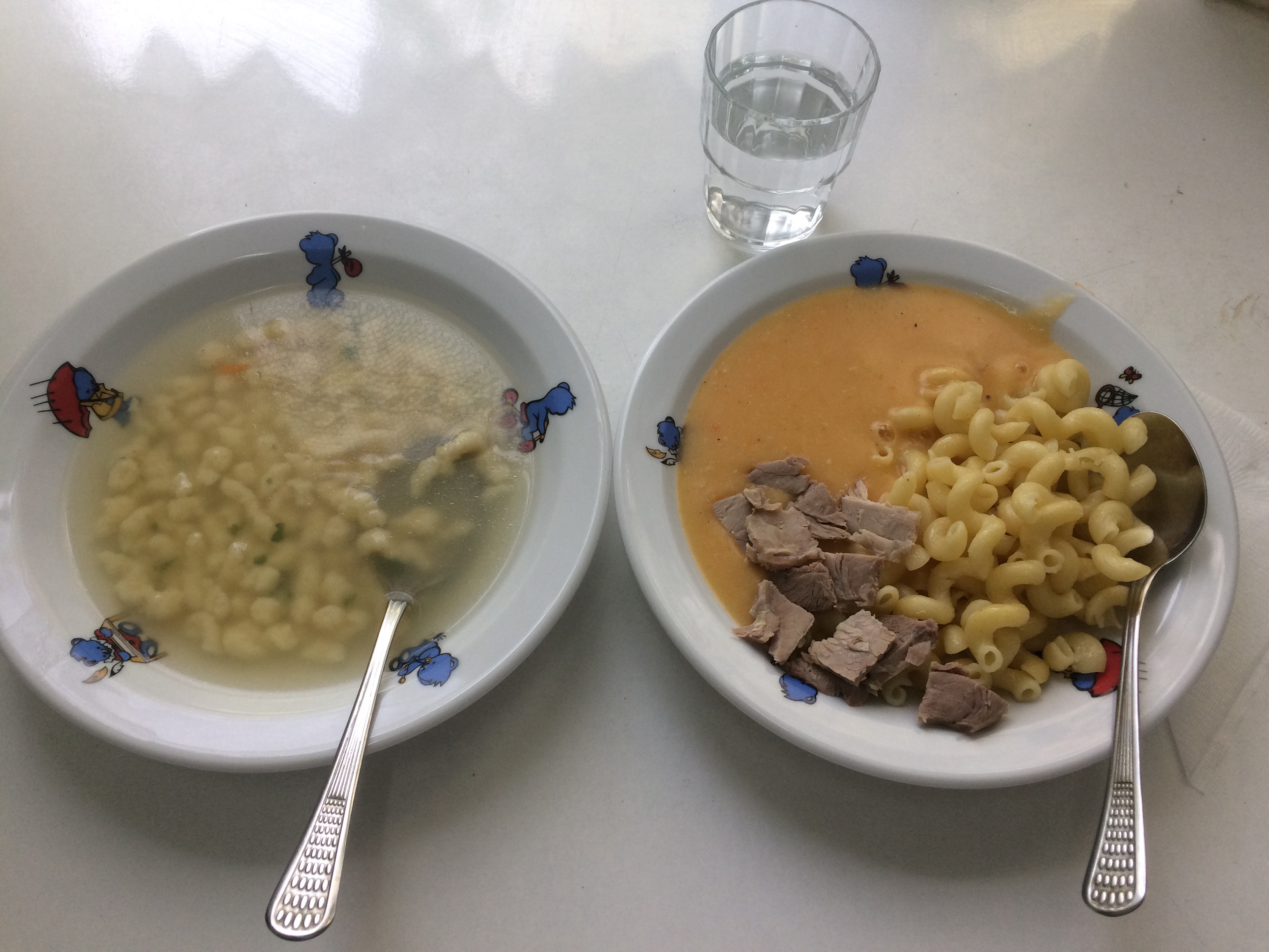 Erőleves daragaluskával Sertés húsos csont Étolaj Tojás Búzadara Fekete őrölt bors Só, jódozott Petrezselyemgyökér Sárgarépa Vöröshagyma Zeller Párolt szelet Sertés comb Étolaj Fekete őrölt bors Só, jódozott Fokhagyma Vöröshagyma Vadas mártás Étolaj Tejföl 12% Liszt Kristálycukor Babérlevél Fekete őrölt bors Só, jódozott Mustár Petrezselyemgyökér Sárgarépa Vöröshagyma Citromlé 40%