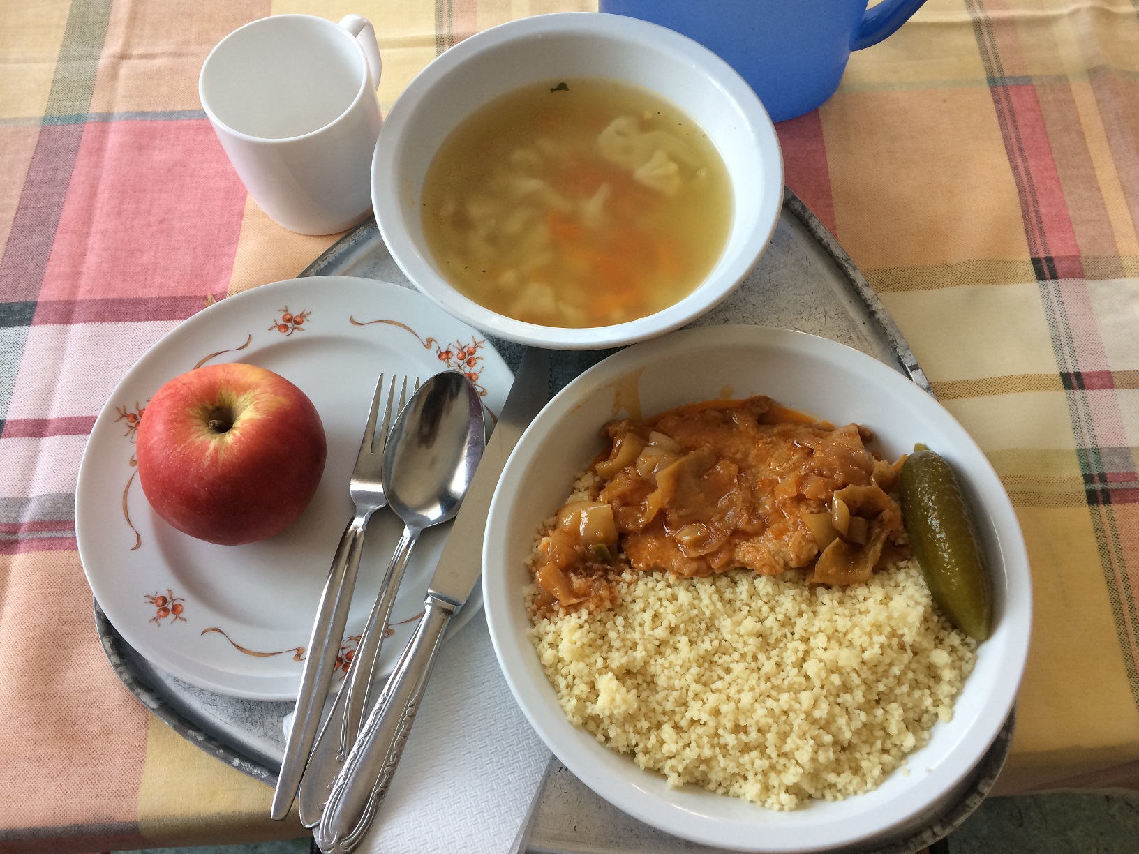 Karfiolleves Karfiol (mirelit) Sárgarépa Petrezselyemgyökér Vöröshagyma Zeller Petrezselyemzöld Só Csipet tészta Lecsós szelet Sertés karaj Paprika (mirelit) Lecsó konzerv Vöröshagyma Búzaliszt Olaj Fűszerpaprika Őrölt bors Só Kuszkusz Vörös/ Lilahagyma Bulgur Petrezselyemzöld Vitamin saláta Ecet 10% Fejeskáposzta Só Köménymag Kristálycukor Olaj Sárgarépa Uborka Vörös/Lilahagyma |