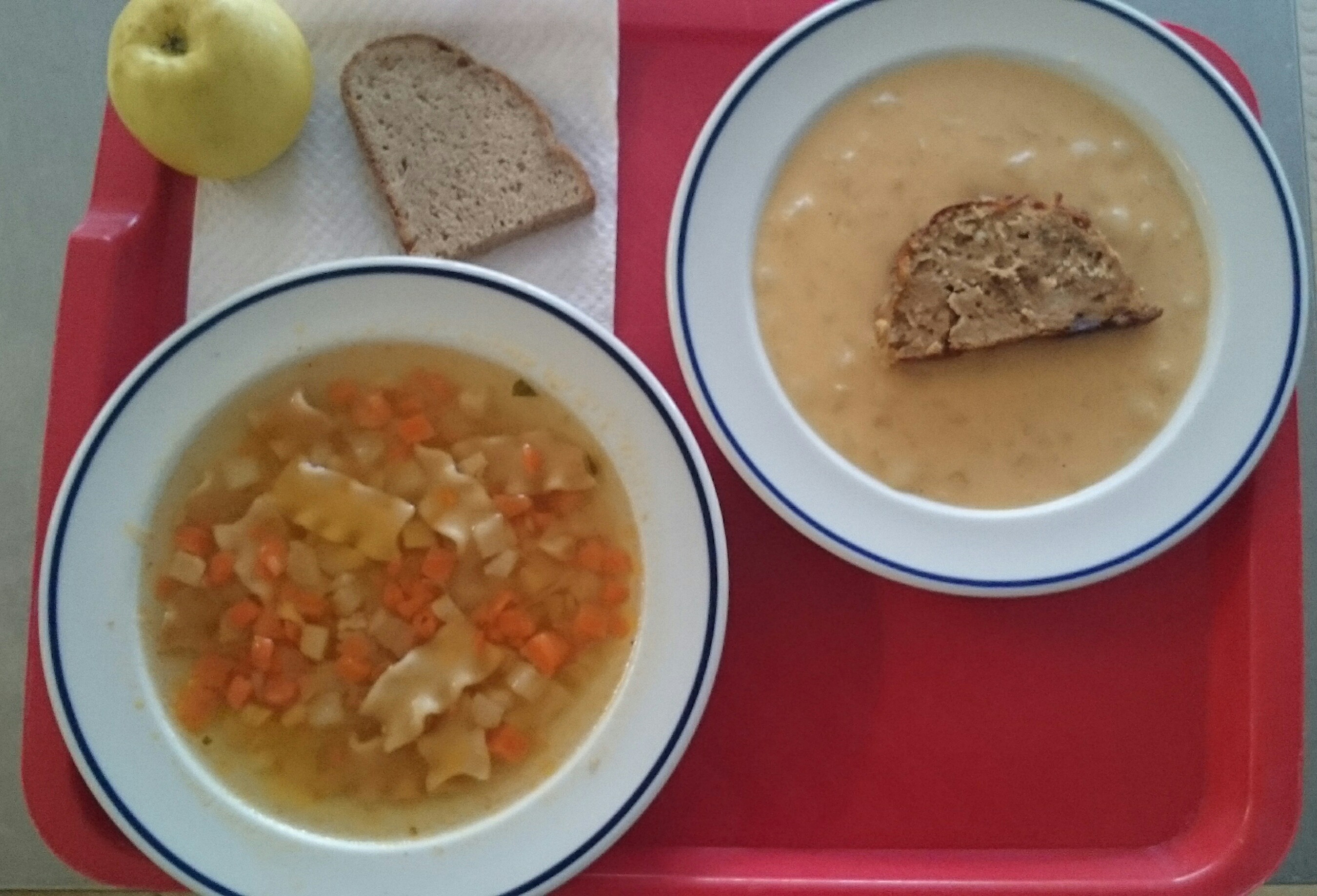 Menü: Lebbencsleves, Burgonyafőzelék sertésvagdalttal, Teljeskiőrlésű kenyér, Alma