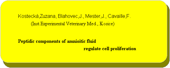 34. KOSTECKÁ,Zuzana, BLAHOVEC,J., MESTER,J., CAVAILLE,F.: Peptic components of amniotic fluid regulate cell proliferation. (Az amnion-folyadédk peptidjei szabályozzák a sejtproliferációt)