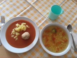 Menü: Zöldségleves, Paradicsomos húsgombóc főtt burgonyával