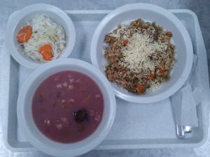 Menü: Szilvaleves, Csirkemájrizottó reszeltsajttal és sárgarépás káposztasalátával