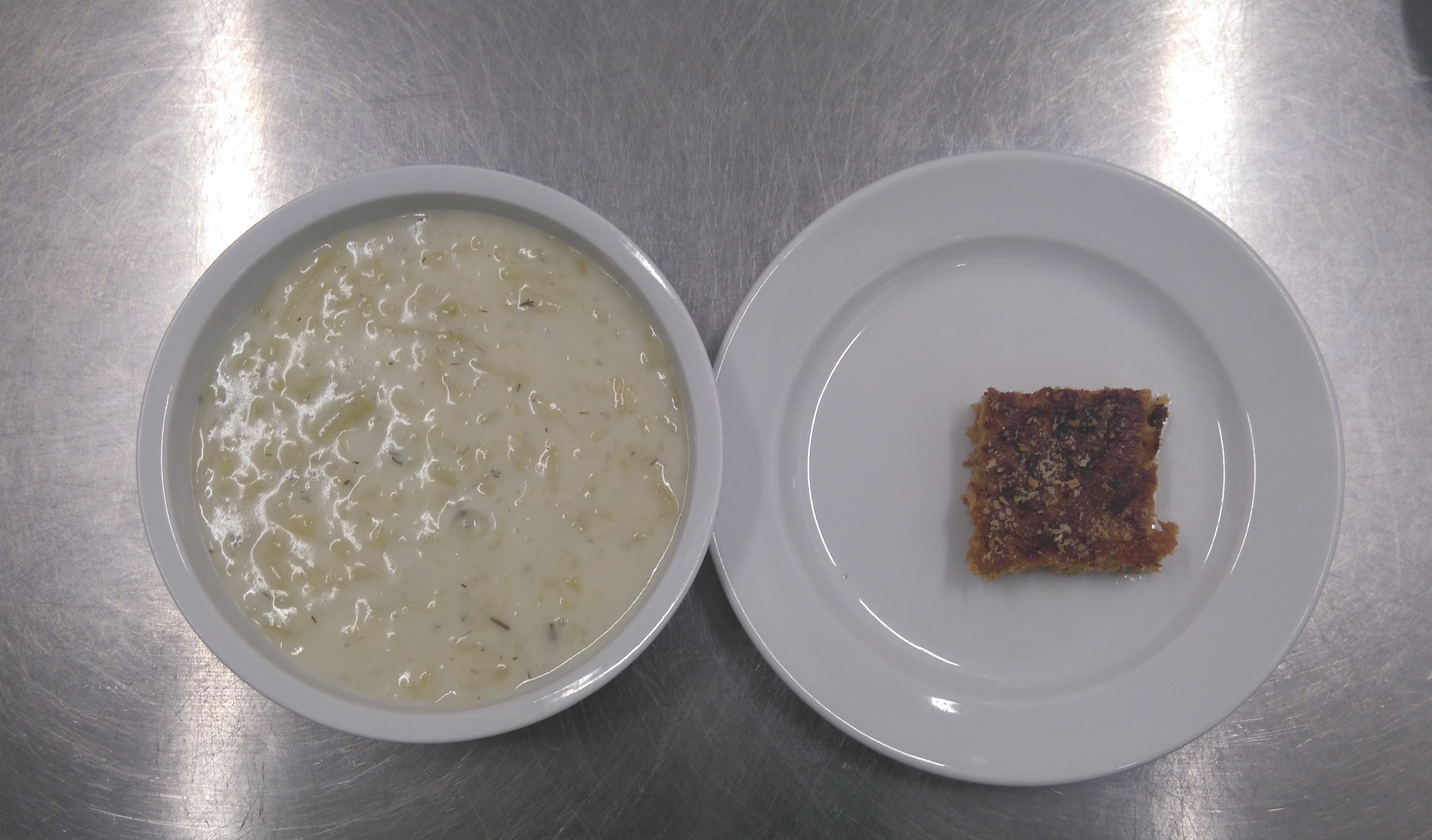 | Illat: | A főzeléknél a tejtermék illata dominál, kissé üres illatú, a kapor illata nem eléggé érezhető. A húspuding megfelelően fűszeres illatú. Idegen szagtól mentes. |